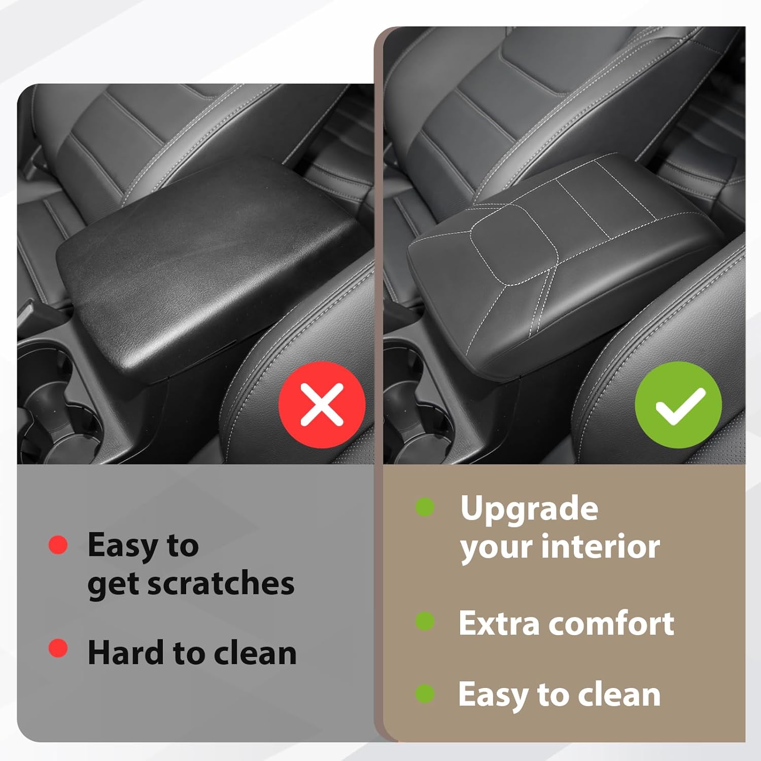 - Unique Design: Designed according to the OEM seat texture to make it match your interior perfectly and even better. Our armrest cover is crafted with high-quality Vegan Leather and an extra layer of foam, which is skin-friendly, breathable and soft.