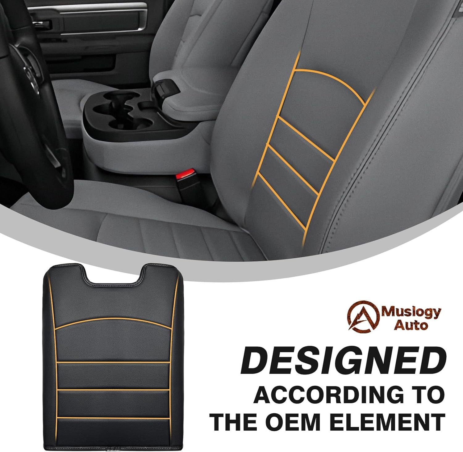 Muslogy Center Console Armrest Cover Compatible with Dodge Ram 1500 2013-2018 & 2013-2025 Ram 2500/3500 Comfort Armrest Pad Arm Rest Cushion Vegan Leather Protector Regular Thick(Jump Seat ONLY)