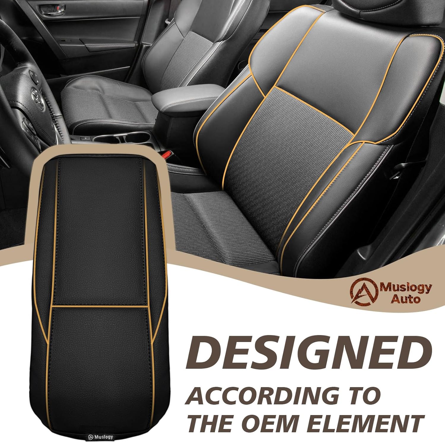 Muslogy Center Console Armrest Cover Compatible with Toyota Corolla 2014-2019 Comfort Armrest Pad Arm Rest Cushion Vegan Leather Protector Regular Thick