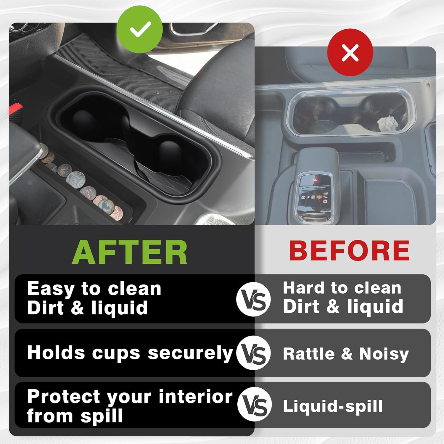 - Function: Maximize the storage space while keeping your cup in place without rattling. Perfectly organize your items neatly. Easy to clean, effortlessly keeping your cup holder area tidy. Provide full protection for your interior against scratches and damage
