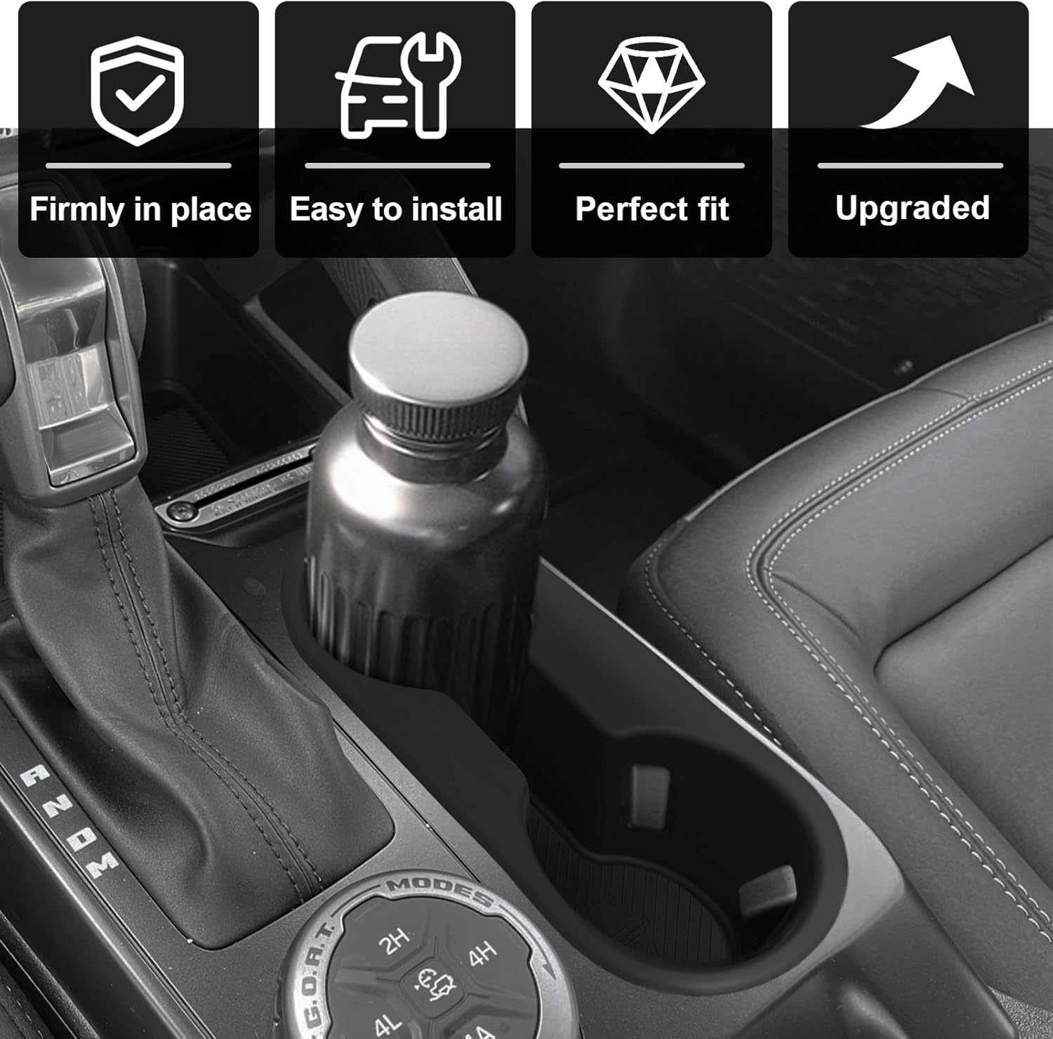Muslogy Center Console Cup Holder Inserts Compatible with 2025 Ford Bronco Accessories Middle Console Armrest Front Drink Stopper Non-Slip Silicone Rubber Organizer Drink Cup Holder Organizer