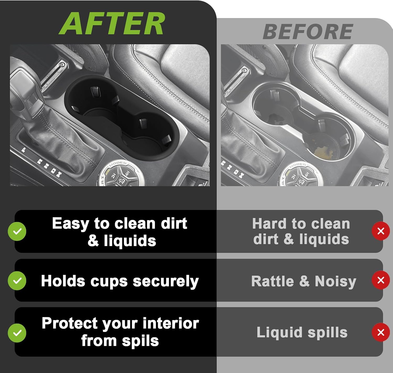 - Function: Maximize the storage space while keeping your cup in place without rattling. Perfectly organize your items neatly. Easy to clean, effortlessly keeping your cup holder area tidy. Provide full protection for your interior against scratches and damage