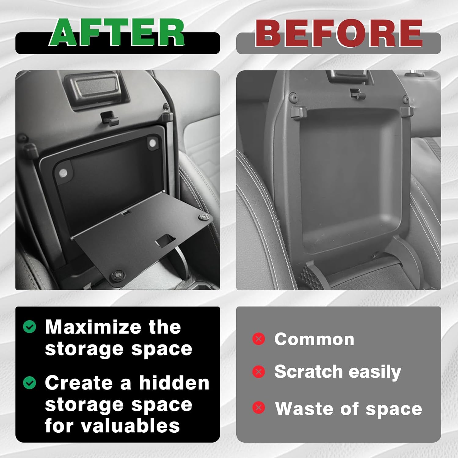 Muslogy Center Console Hidden Organizer Magnet Opening Design Compatible with Ford Ranger 2024 2025 Accessories Armrest Hidden Storage Box Insert Secret Organizer Magnetic Switch