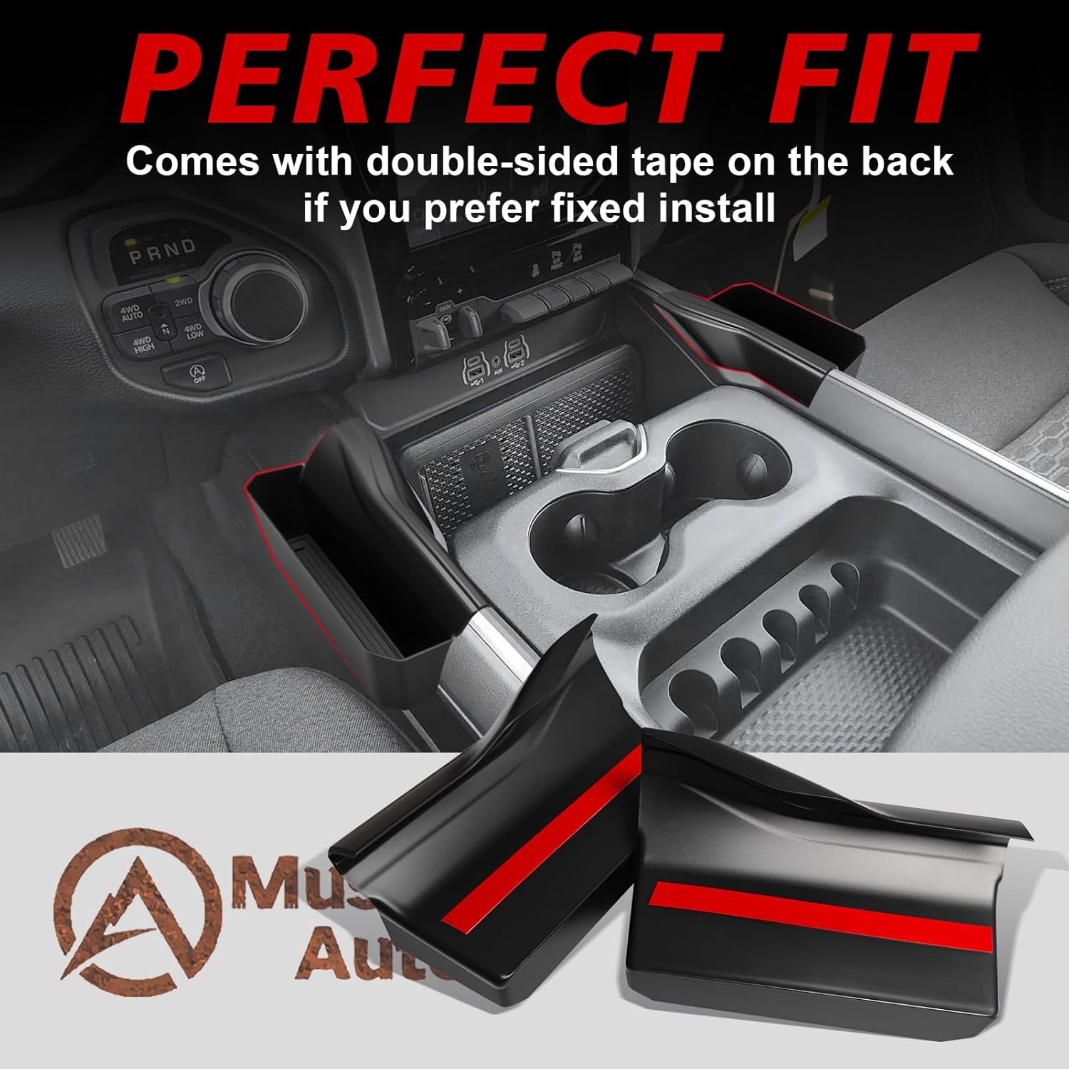 - Perfect Fitment:Muslogy for 2019 2020-2024 2025 Ram 1500 Console Side Organizer is designed according to the 3D Laser scanning data to make sure it fits your Ram 1500 perfectly(Not Fit Classic & Jump seat)(Note: May restrict the driver's seat forward movement. Not recommended for those who need to pull the seat very far forward.).