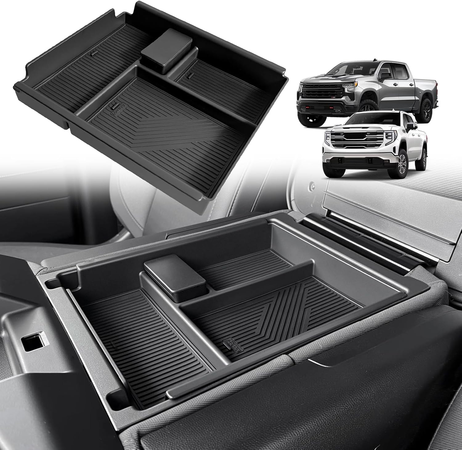 Muslogy Center Console Organizer Compatible with 2020-2025 Chevy Silverado/GMC Sierra 1500 Accessories Storage Insert Box Console Armrest Divider(Jump Seat ONLY) - Upper Organizer