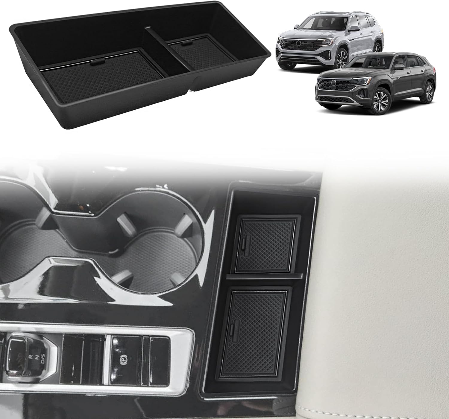 Muslogy Center Console Organizer Compatible with Volkswagen Atlas & Cross Sport 2024 2025 Interior Accessories Armrest Front Storage Tray Secondary Storage Box(Armrest Front Tray)