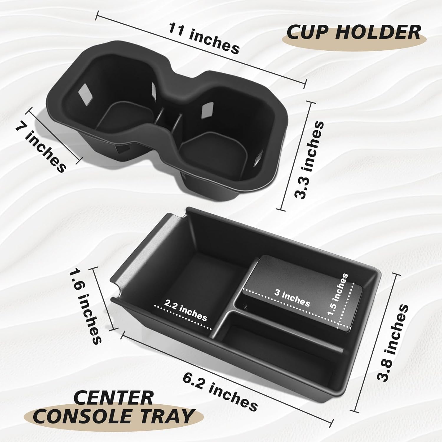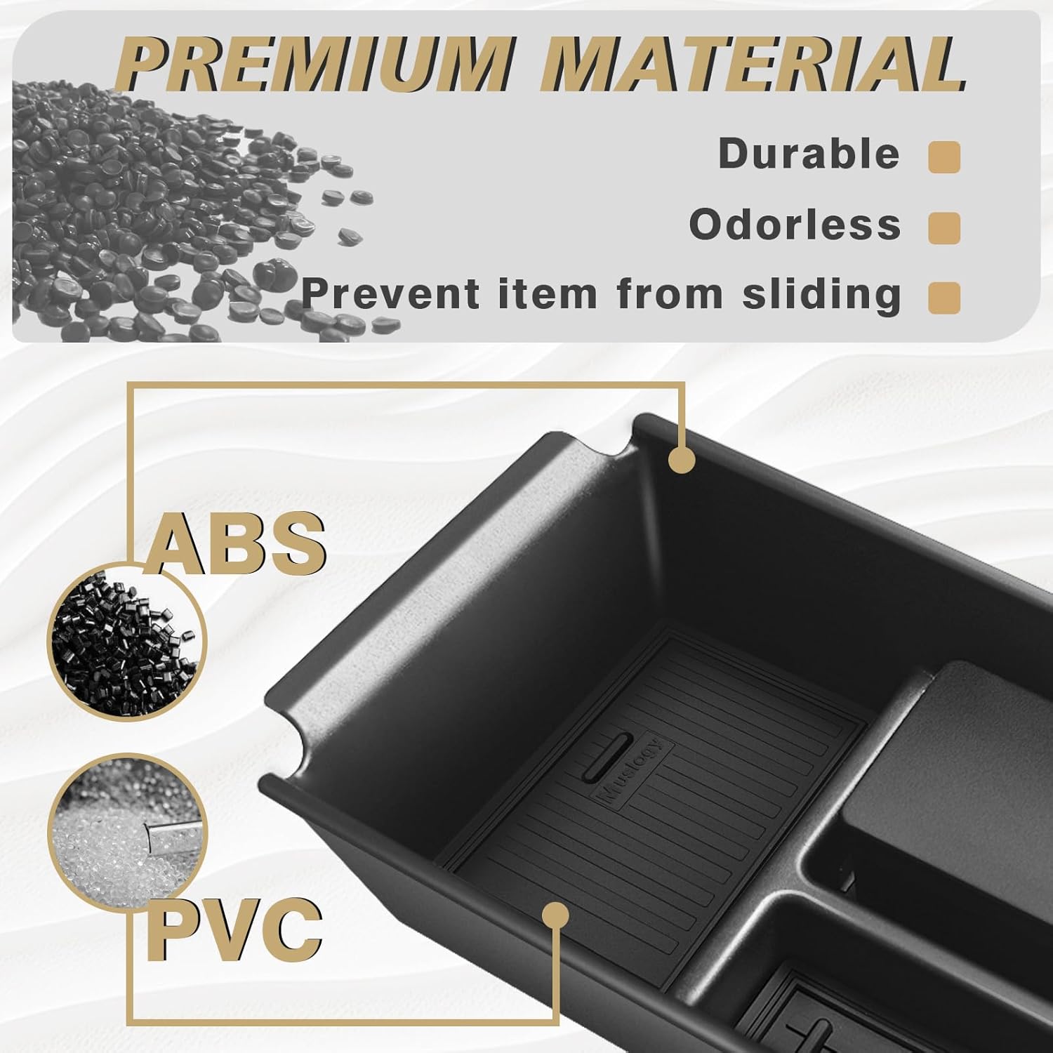 - High-Quality Material: Our storage tray is made of premium ABS material, which is durable, non-deforming and wear-resistant. Comes with insert mats that are made of premium PVC material to make it odorless and waterproof. Our cup holder is made of premium silicone material, which is built to withstand the rigors of daily use and varying temperatures inside the vehicle.