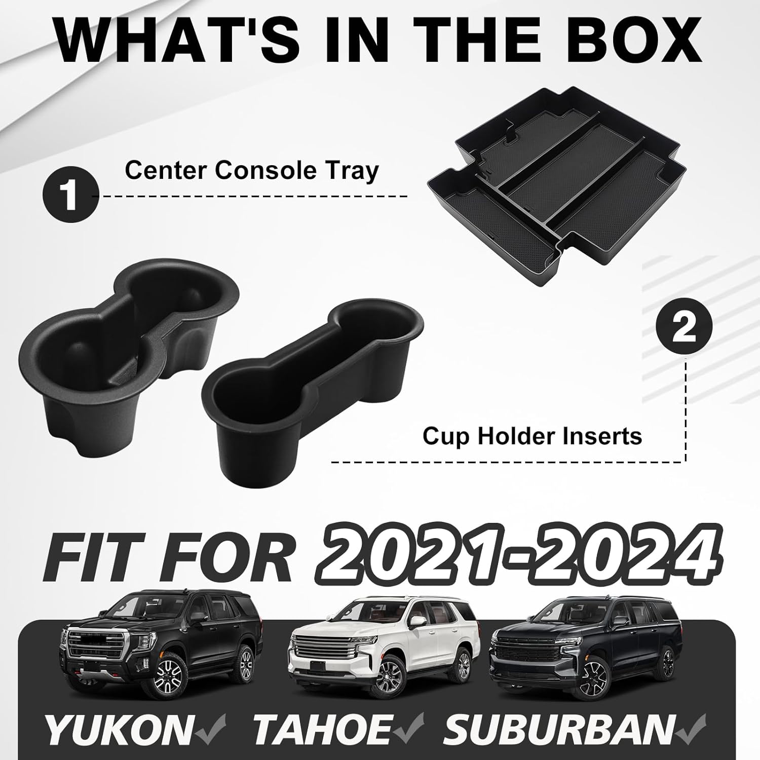 - Perfect Fitment: Designed according to the 3D laser scan data to make sure it fits your latest GMC Yukon/ Chevrolet Suburban/ Tahoe 2021-2024 perfectly. Note: the console organizer fits the sliding console ONLY.