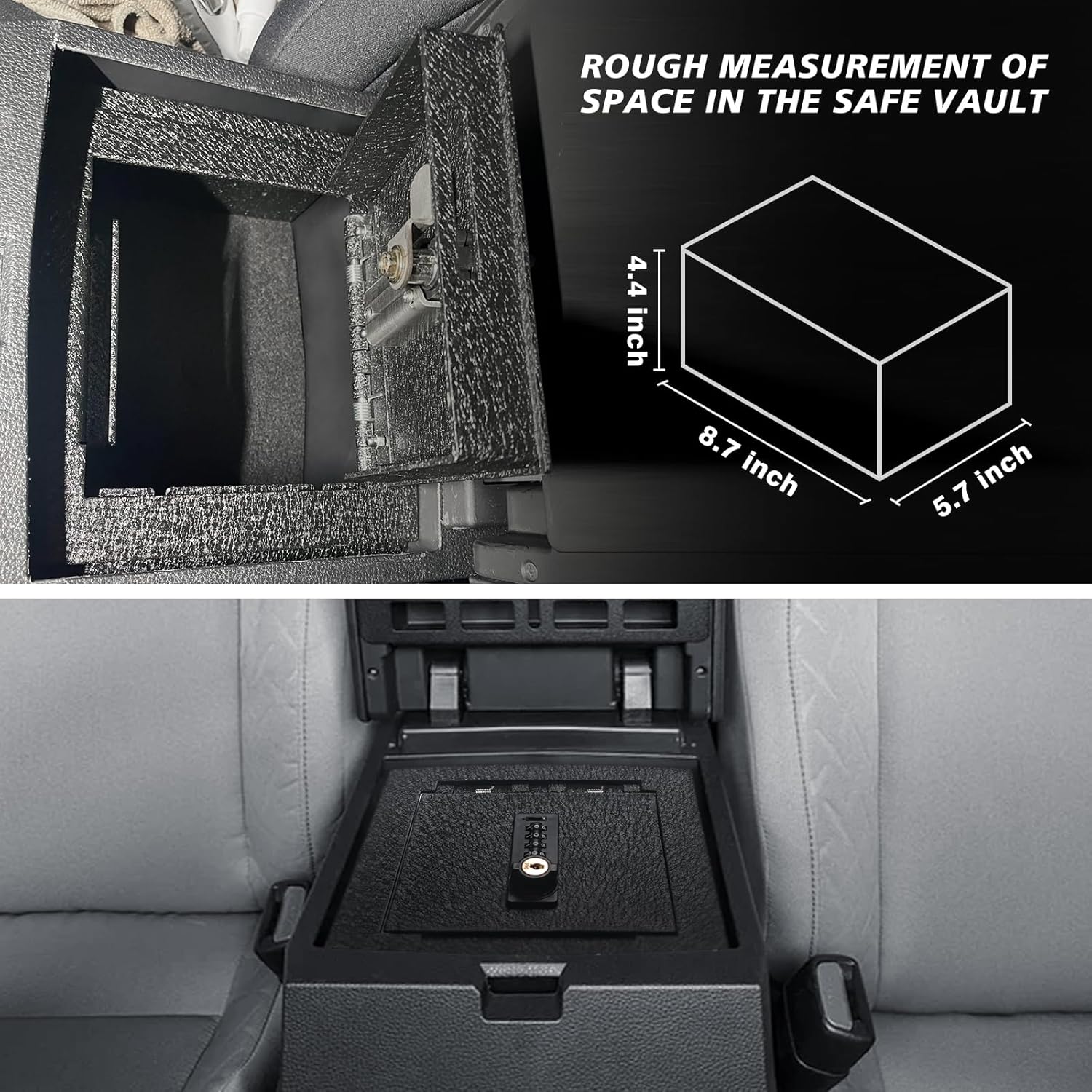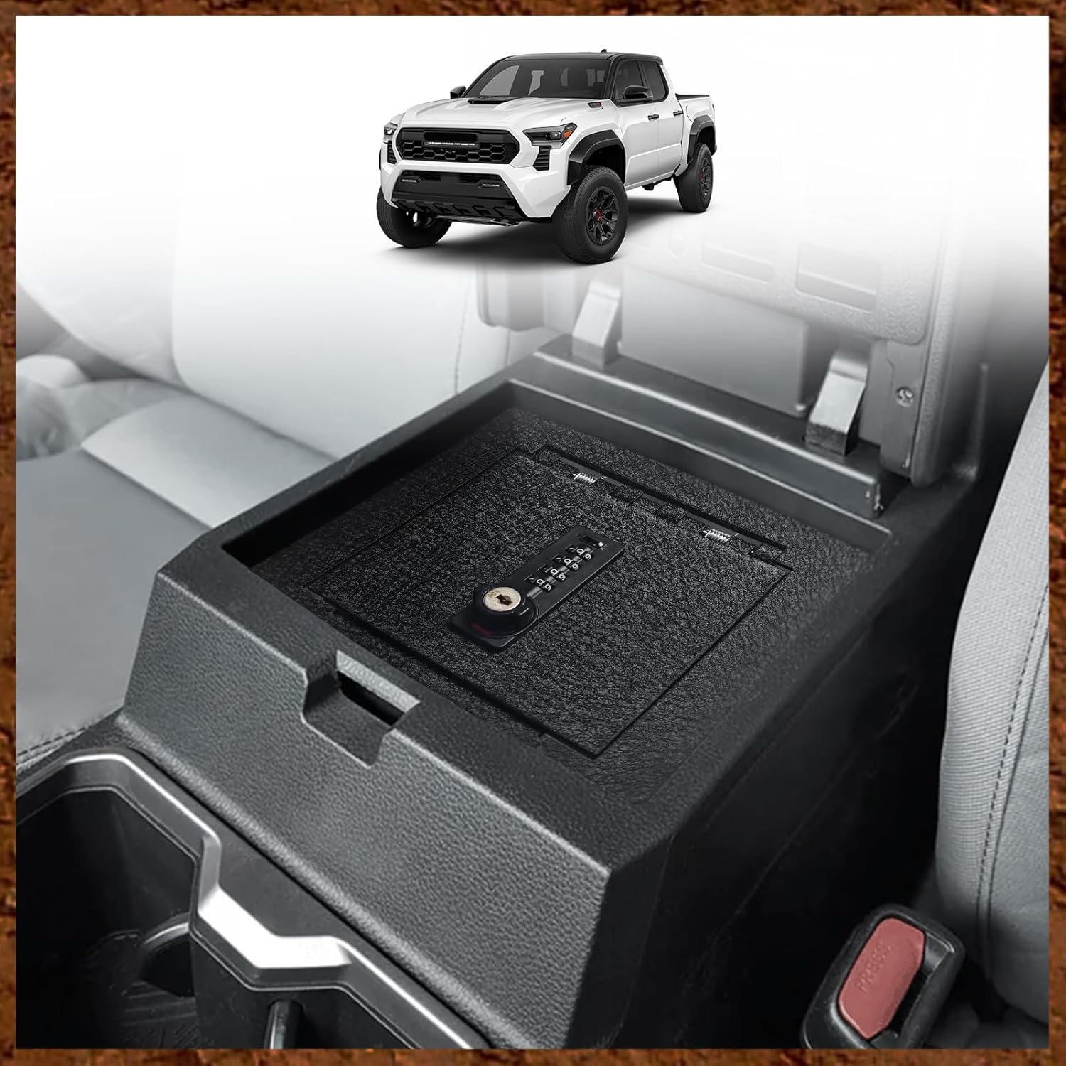 Muslogy Center Console Safe Lockbox Compatible with Toyota Tacoma 2024 2025 Accessories 4th Gen Tacoma Console Vault Box Gun Safe Extra Storage Safety Security 4 Digit Combination Lock with Key