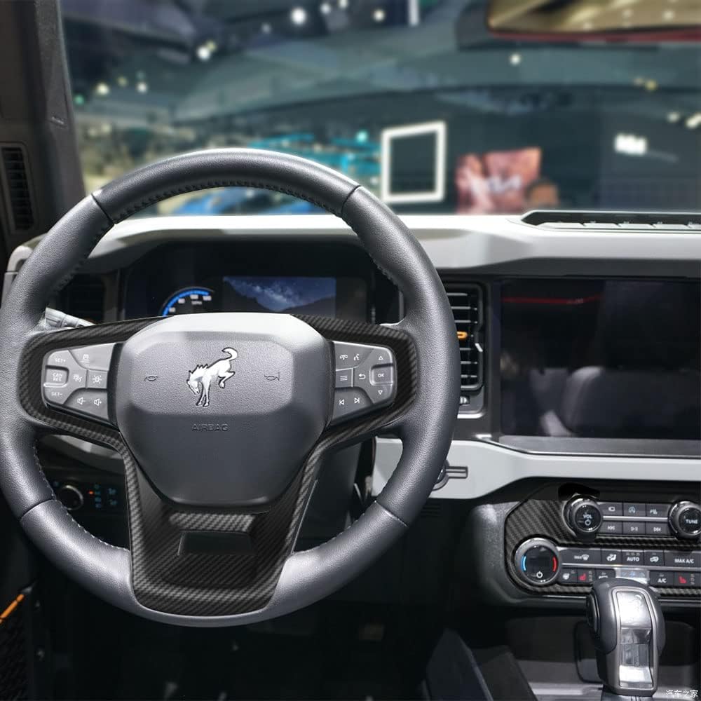 Muslogy Compatible with Ford Bronco 2023 2024 4Door Set of 9 Interior Modification Covers Gear Shift Panel Trim Inner Door Handle Bowl Steering Wheel Cover for Bronco 2021-2024 (Matt Carbon Fiber)