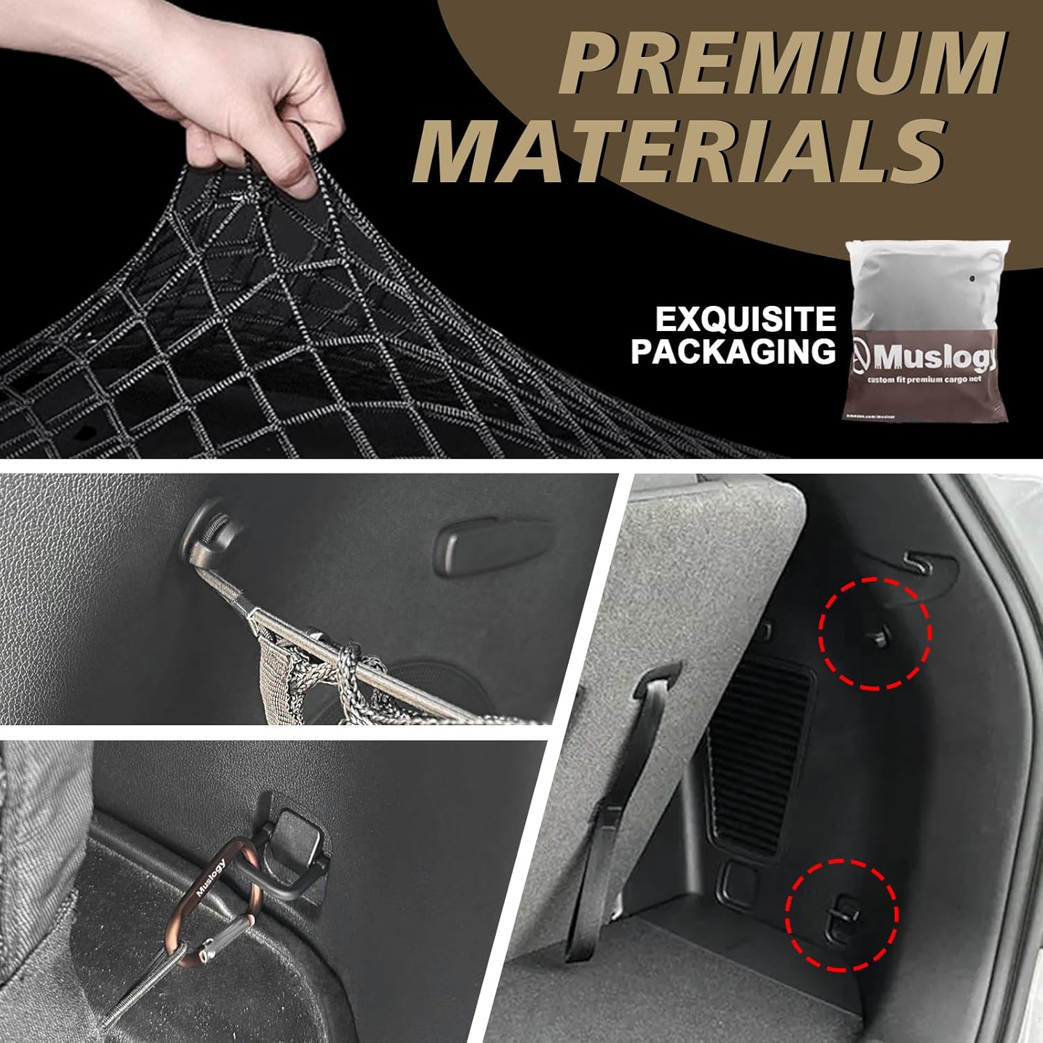 Muslogy Envelope Style Trunk Cargo Net Compatible with 2021-2024 2025 Kia Sorento Accessories Custom Fit Trunk Organizer Upgraded Mesh Storage Luggage Net with Metal Hooks