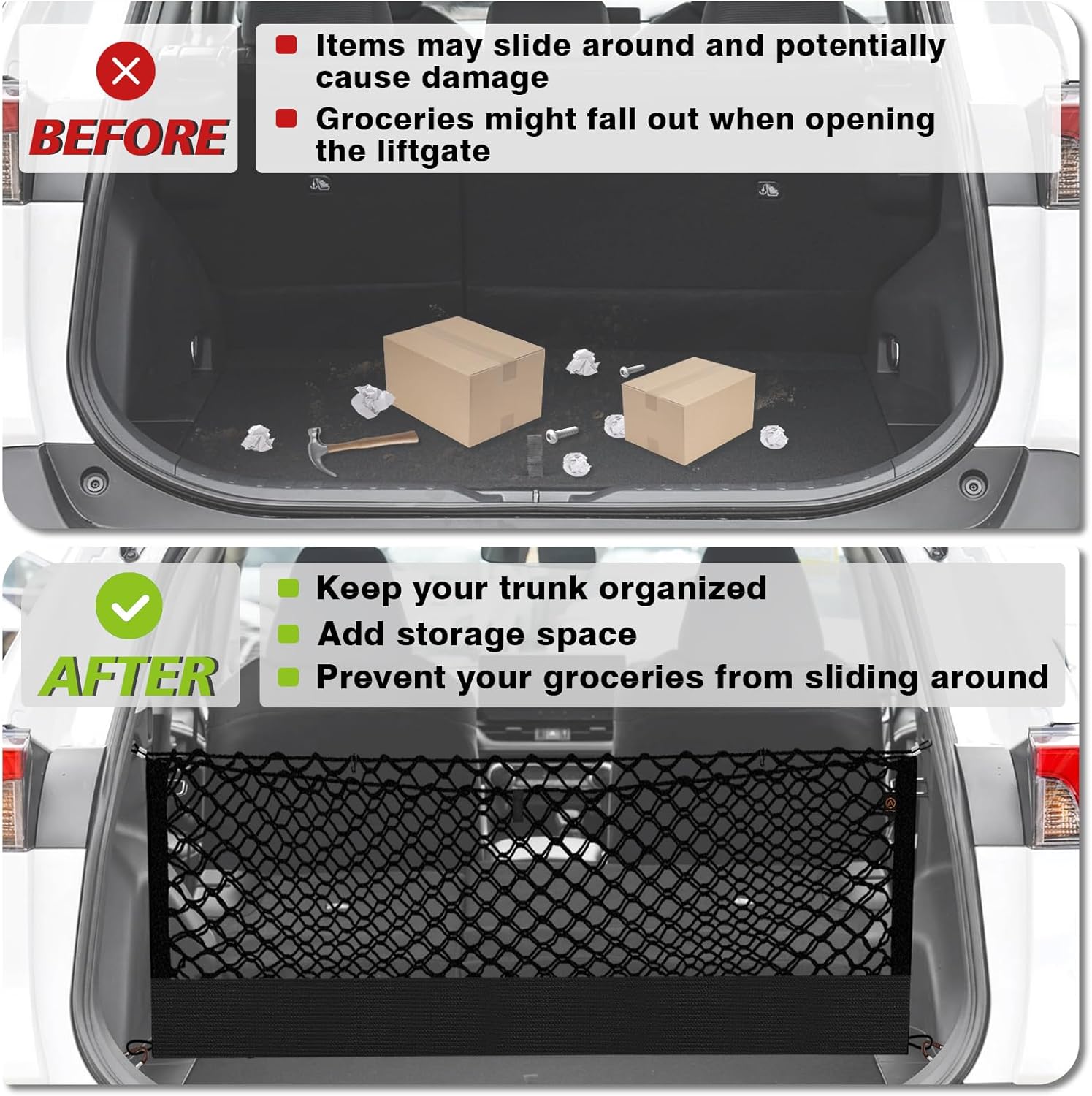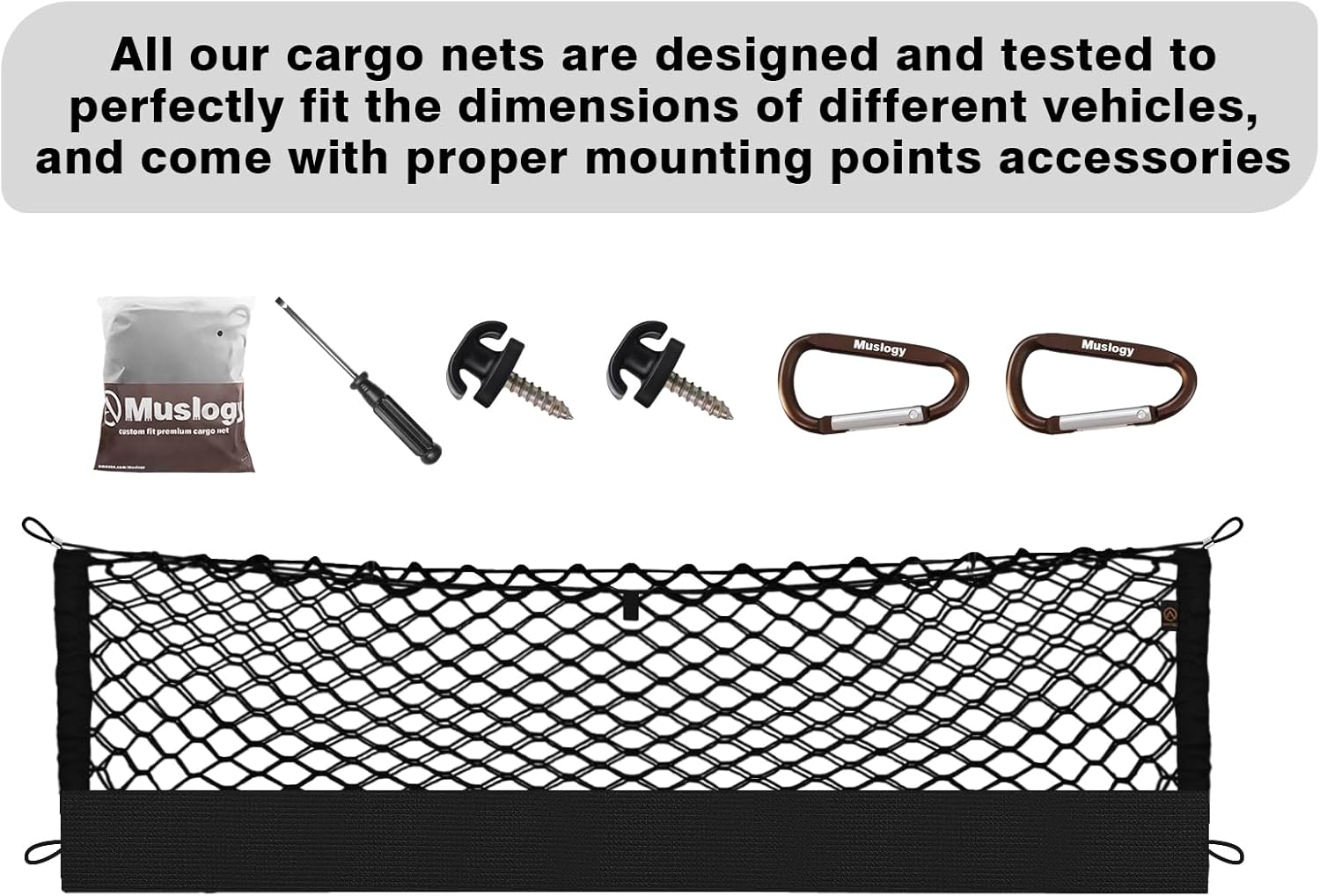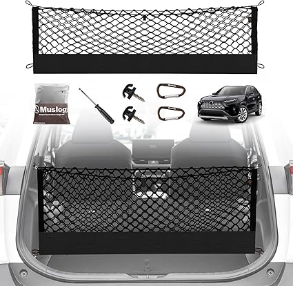 Muslogy Envelope Style Trunk Cargo Net Compatible with Toyota RAV4 2019-2024 2025 Accessories Custom Fit Trunk Organizer Upgraded Storage Luggage Net with Metal Hooks