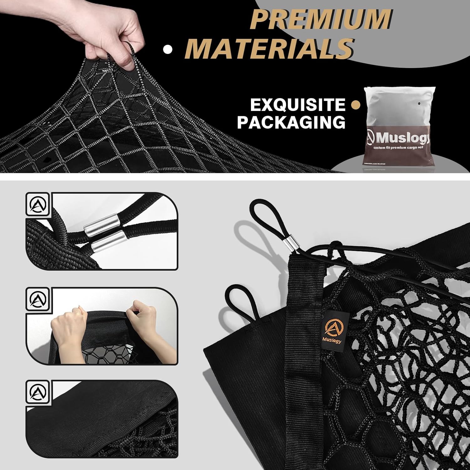 - Muslogy LockNflex Material: Securely 'locks' small items, prevents them from falling out, and at the same time prevents larger items such as groceries and tools from rolling while driving.