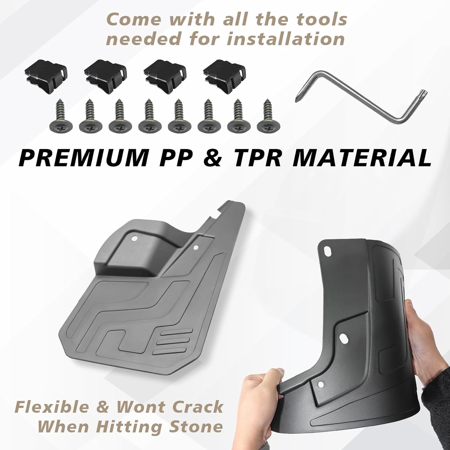 - Easy to Install: No drilling needed. Comes with all the tools needed for installation and instruction. Package includes front flaps*2, rear flaps*2, tools bag*1, instruction*1