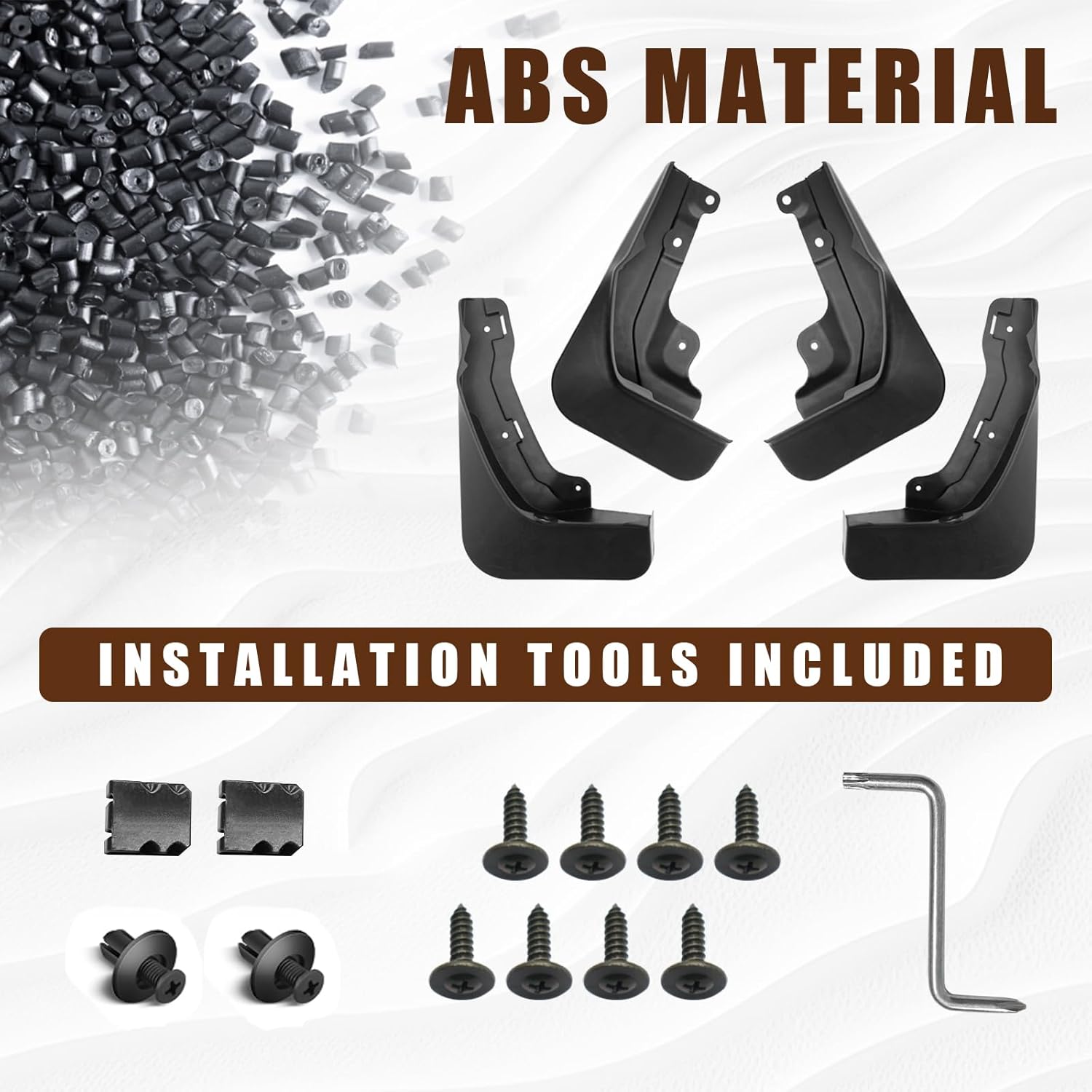 - Easy to Install: Please follow the install guide included in the package. [Note: Use screws or clips on the rear flap according to your trim level] Please follow the install guide included in the package. The package includes 2 * Front Mud Flaps; 2 * Rear Mud Flaps; 1 * Installation Tools Pack; 1 * Product Install Guide.