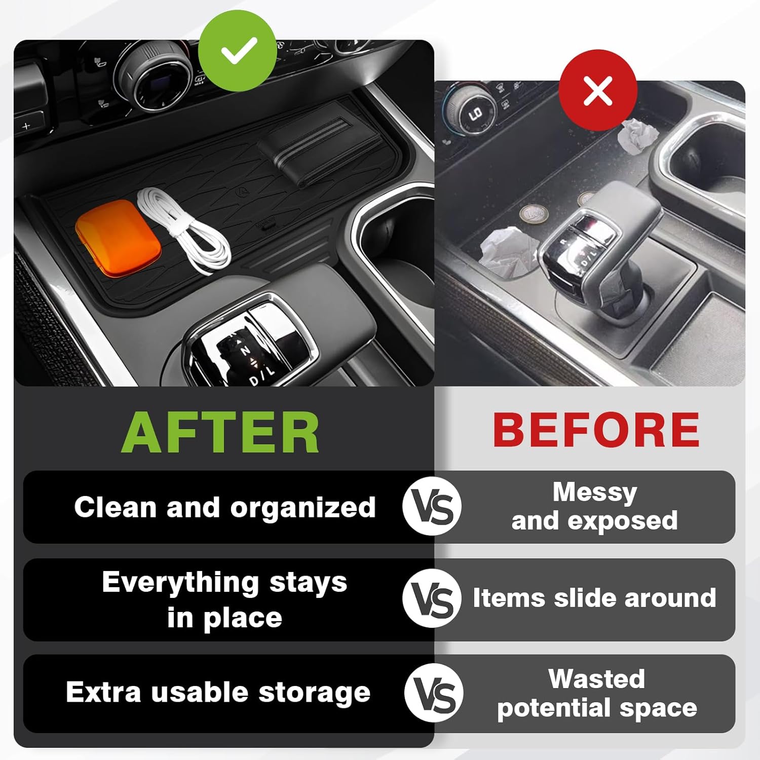 - Function: Creates additional storage without taking up extra space – Maximize your center console by utilizing unused vertical space, allowing you to store more items neatly and efficiently.