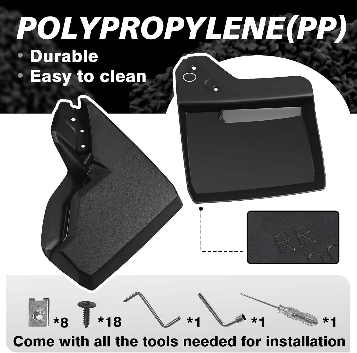 - High Quality Material: Made of premium ABS material to make it impact resistant and sturdy for long-lasting usage. Package includes front flaps*2, rear flaps*2, tools bag*1,instruction*1
