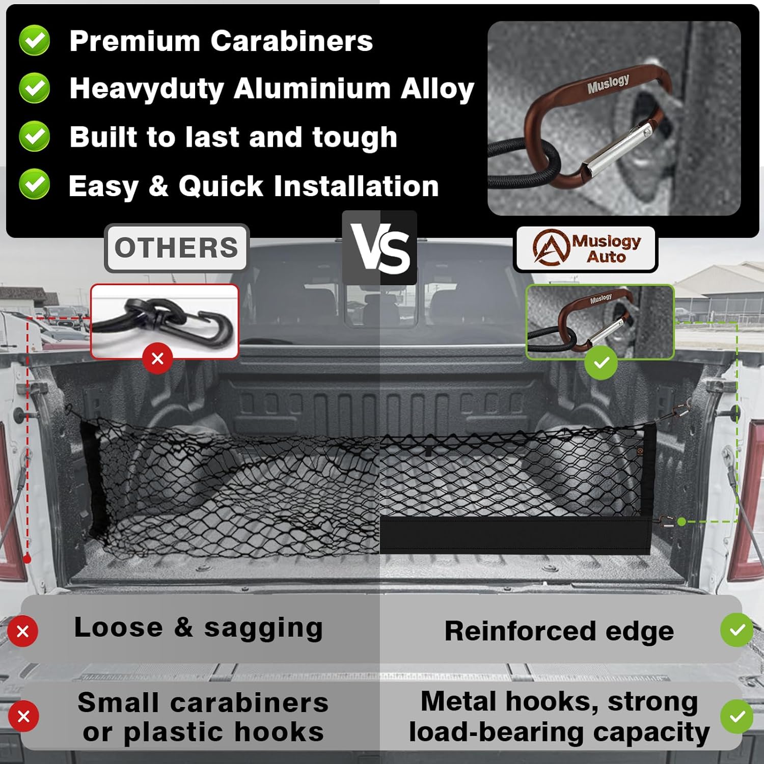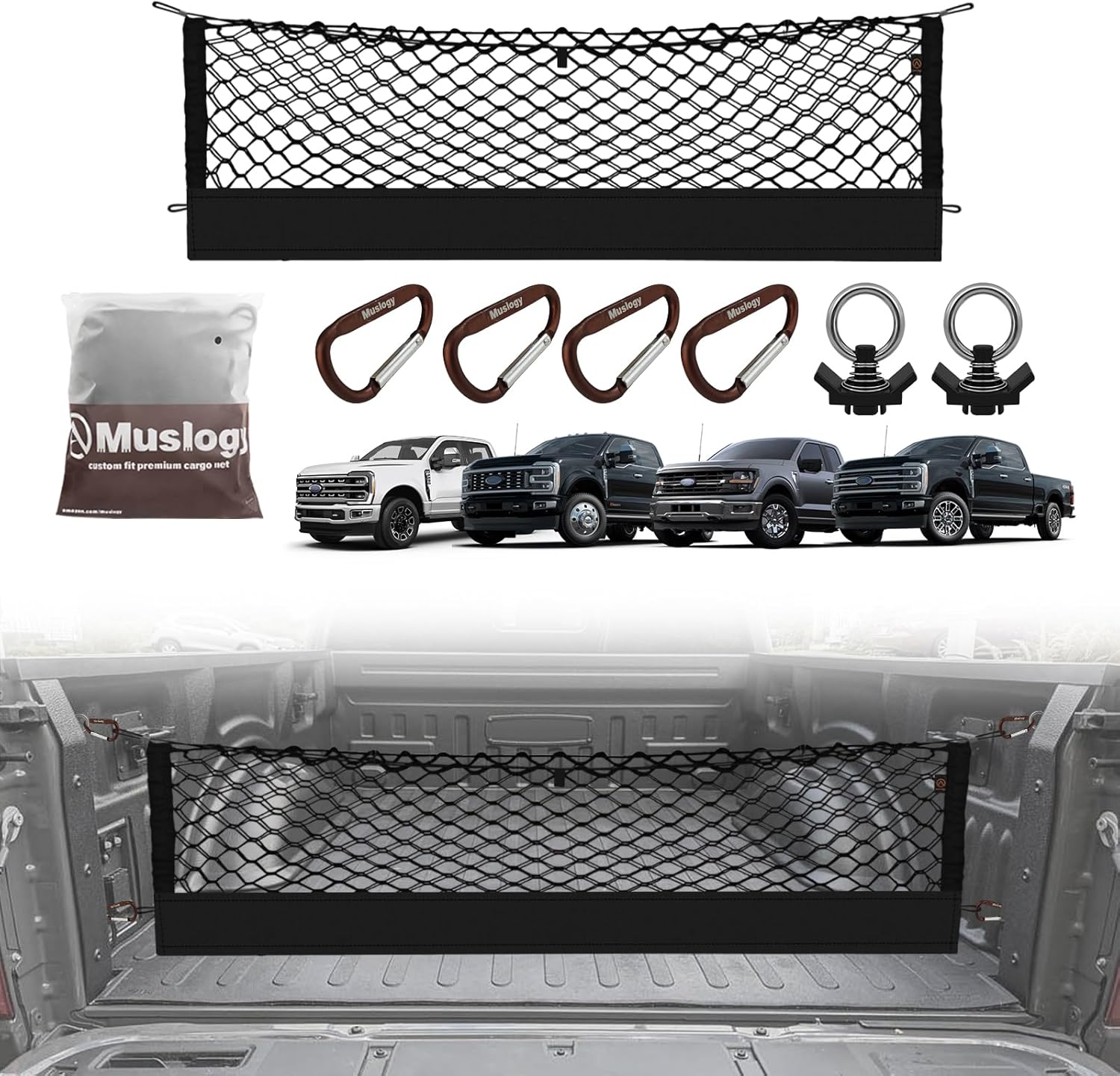 - Perfect Fitment: Muslogy Truck Cargo Net is designed to be compatible with Ford F150 2015-2025 & F250/F350/F450 2017-2025. Fits your truck bed perfectly.