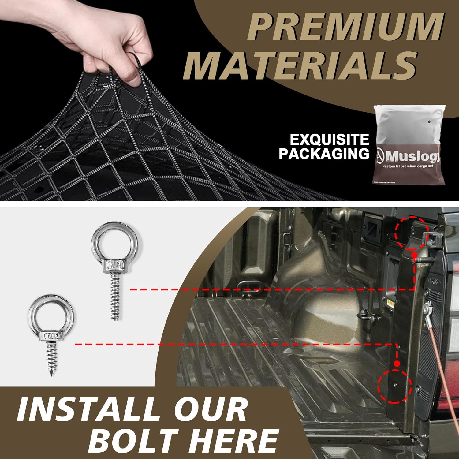Muslogy Truck Bed Cargo Net Compatible with Ford Ranger 2024 2025 Accessories Storage Organizer Pickup Truck Bed Envelope Style Cargo Net with Heavy Duty Carabiners