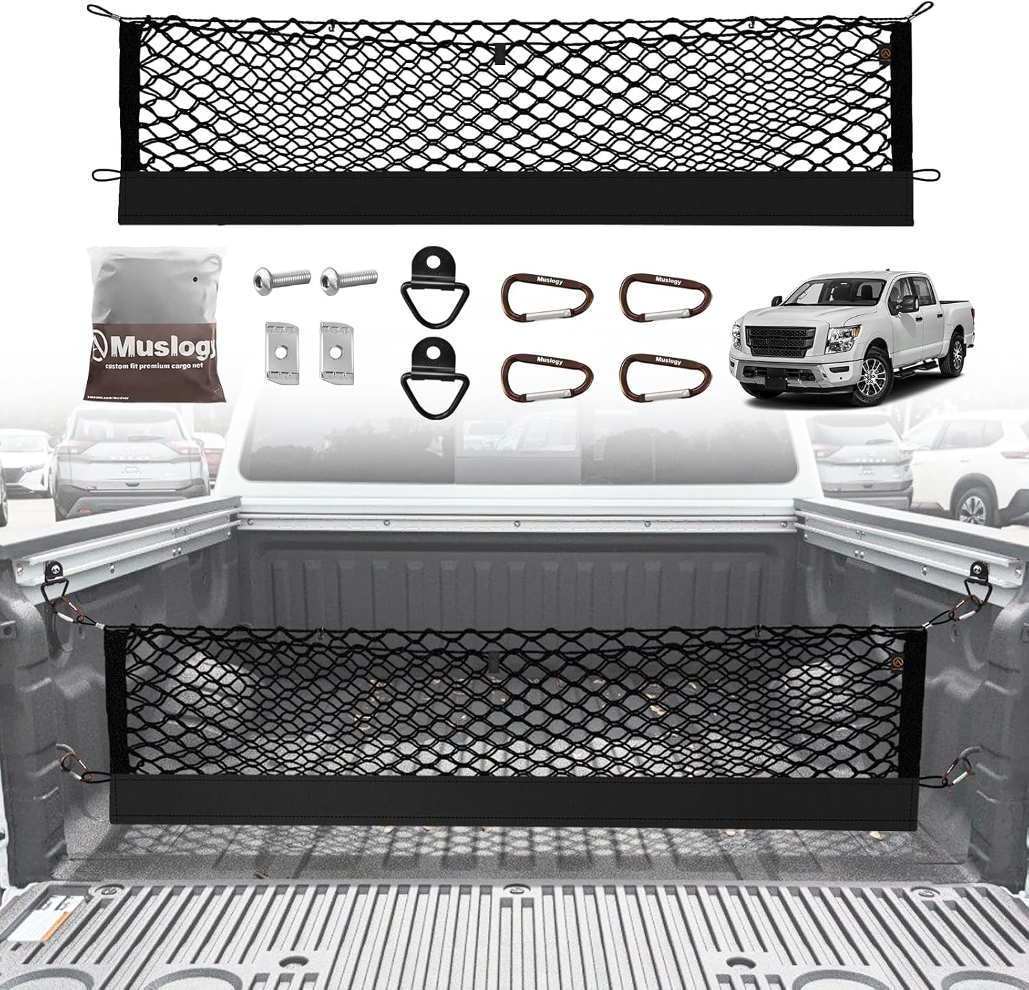 - Perfect Fitment: Muslogy Truck Cargo Net is designed to be compatible with Nissan Titan 2017-2025 . Fits your Tissan S, SV, Pro-4X, SL, and Platinum Reserve perfectly.