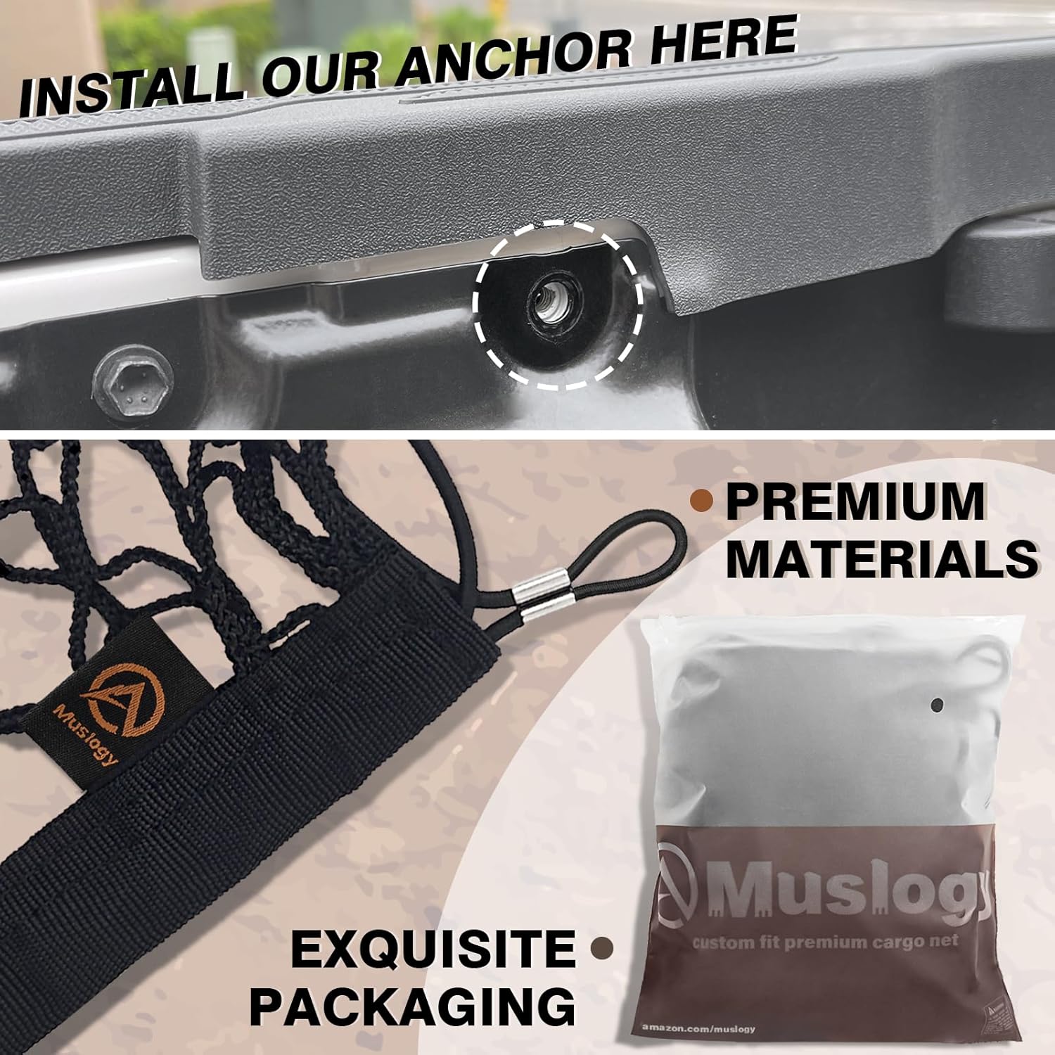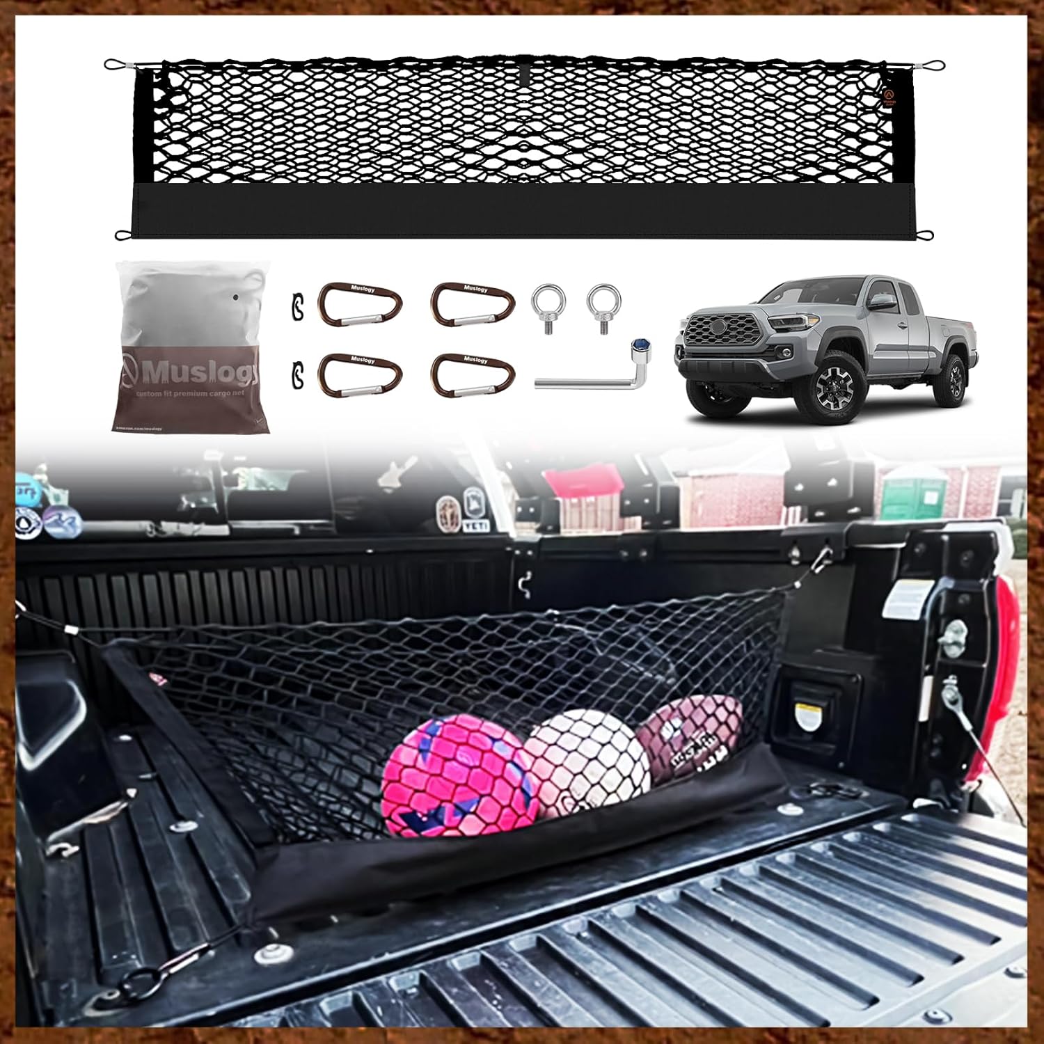 Muslogy Truck Bed Cargo Net Compatible with Toyota Tacoma 2005-2022 2023 Accessories Storage Organizer Pickup Truck Bed Envelope Style Cargo Net with Heavy Duty Carabiner
